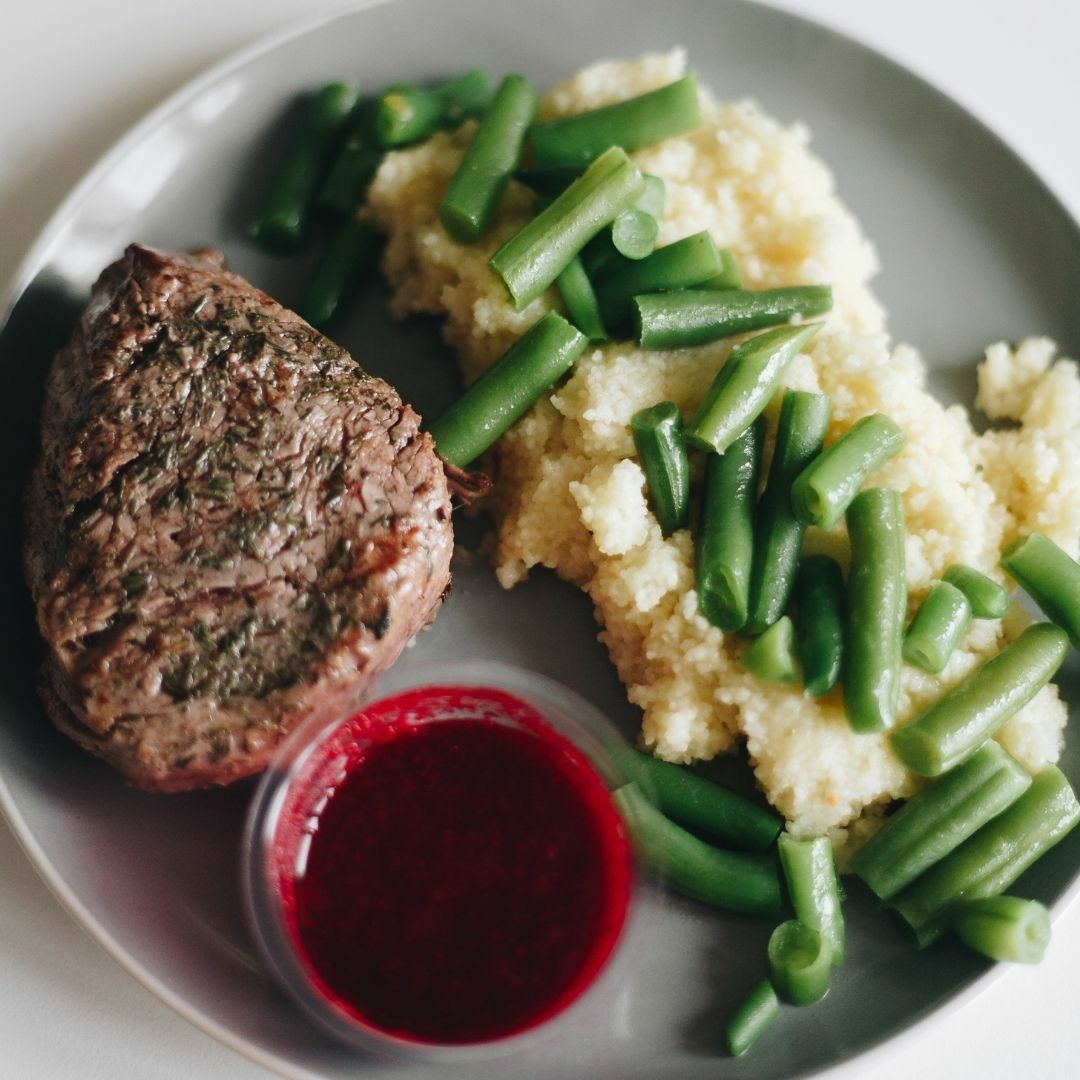 4 - Стейк з свинини з булгуром та овочевим міксом